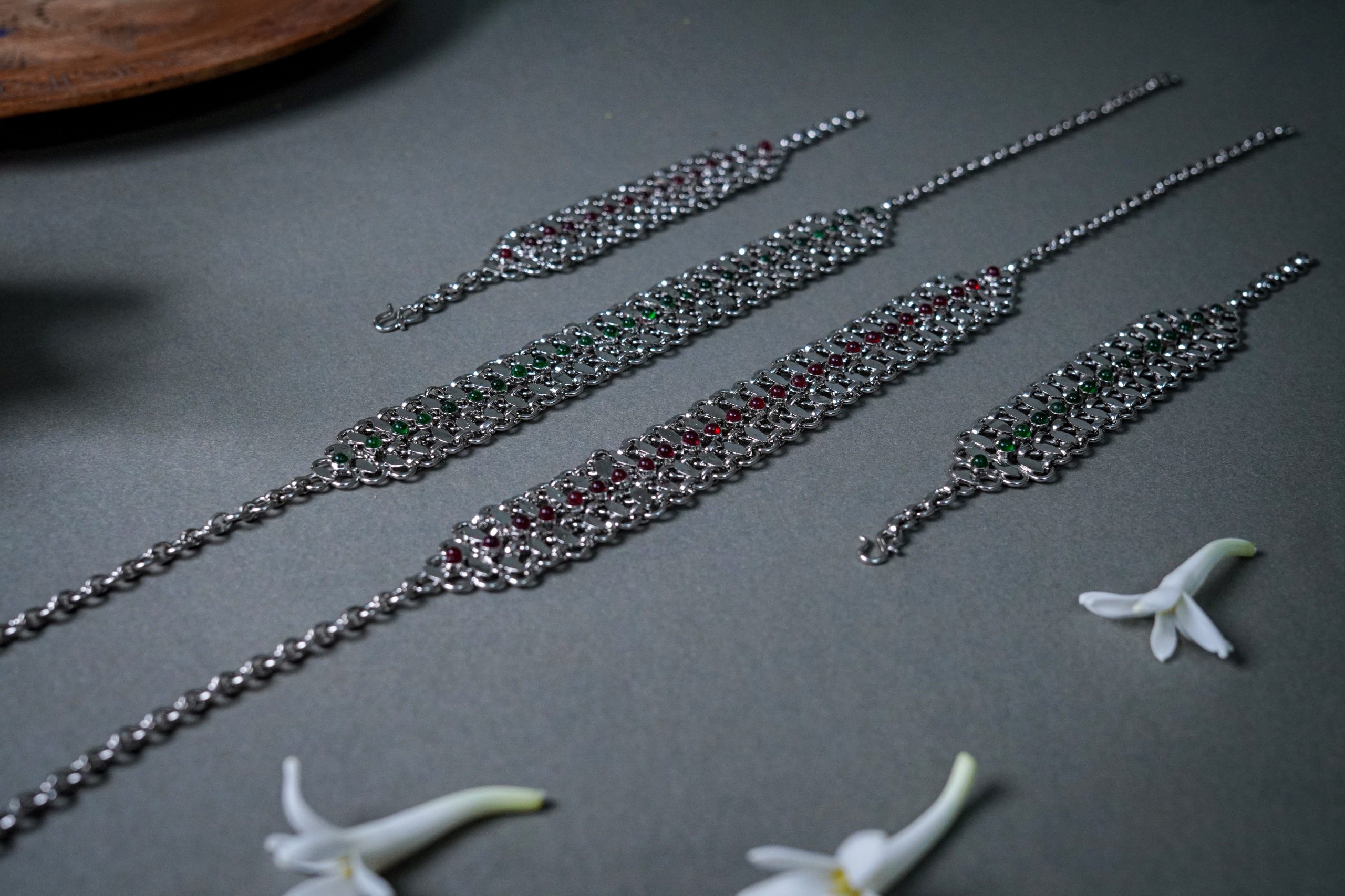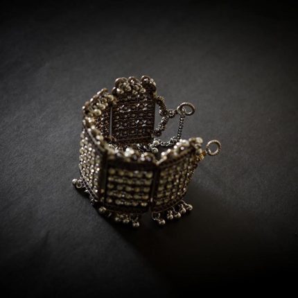 An exquisitely crafted “Houri” (Heavenly Beauty) Jewels, adorned with intricate motifs made from brass and metal. These pieces enhances creativity and bestows a celestial aura, complemented by a premium silver polish that maintains its brilliance without tarnishing. Embrace this timeless elegance and make it your own by styling it in your unique way.