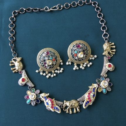 Jaali Pachi Kundan Handmade Necklace Set